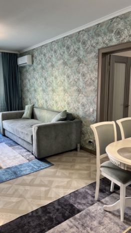 Очень уютная и солнечная . Окна на две стороны . Во двор и на улицу . 2 спальни , большая кухня гостиная , два санузла, кладовая . Вся мебель остается , кроме телевизора , мелкой бытовой техники и личных вещей )