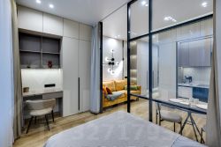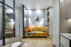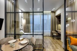 • Зона спальни отделена от гостиной воздушной стеклянной перегородкой