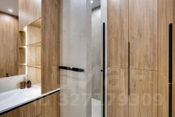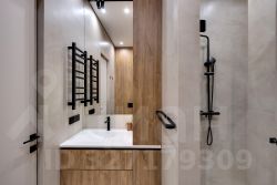 Санузел: душевая кабина, стиральная машина, дополнительные места для хранения.