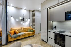 Современный ремонт в нейтральных пастельных тонах с использованием качественных материалов.