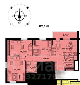 89,3 м²