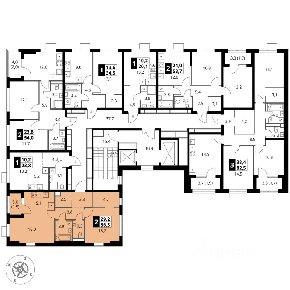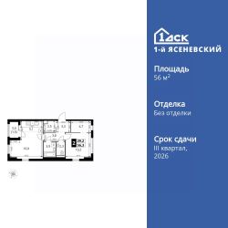 Продаётся 2-к квартира номер 113 общей площадью 56.3 кв.м. на 18-м этаже 18 этажного здания. Без отделки. Цена с учётом скидки.