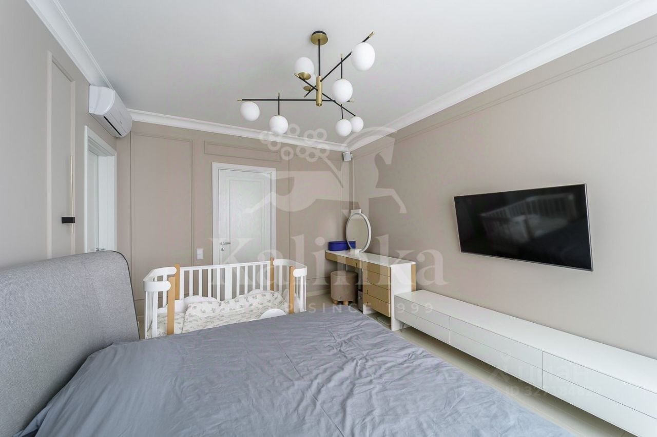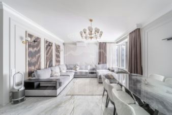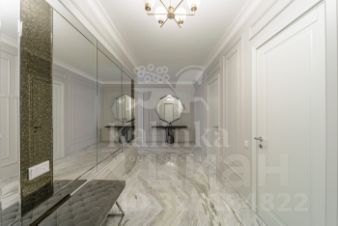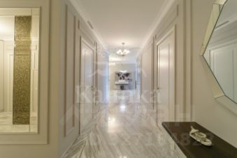 Продуманное планировочное решение позволило создать максимально функциональное пространство для жизни: просторная гостиная, отдельная кухня с премиальной встроенной техникой и выделенной зоной хранения посуды, а также три изолированные спальни. Мастер-спальня дополнена собственной гардеробной и индивидуальным санузлом. Всего в квартире предусмотрено четыре санузла, один из которых совмещен с удобной постирочной зоной. Из гостевой спальни организован выход на уютную лоджию.
