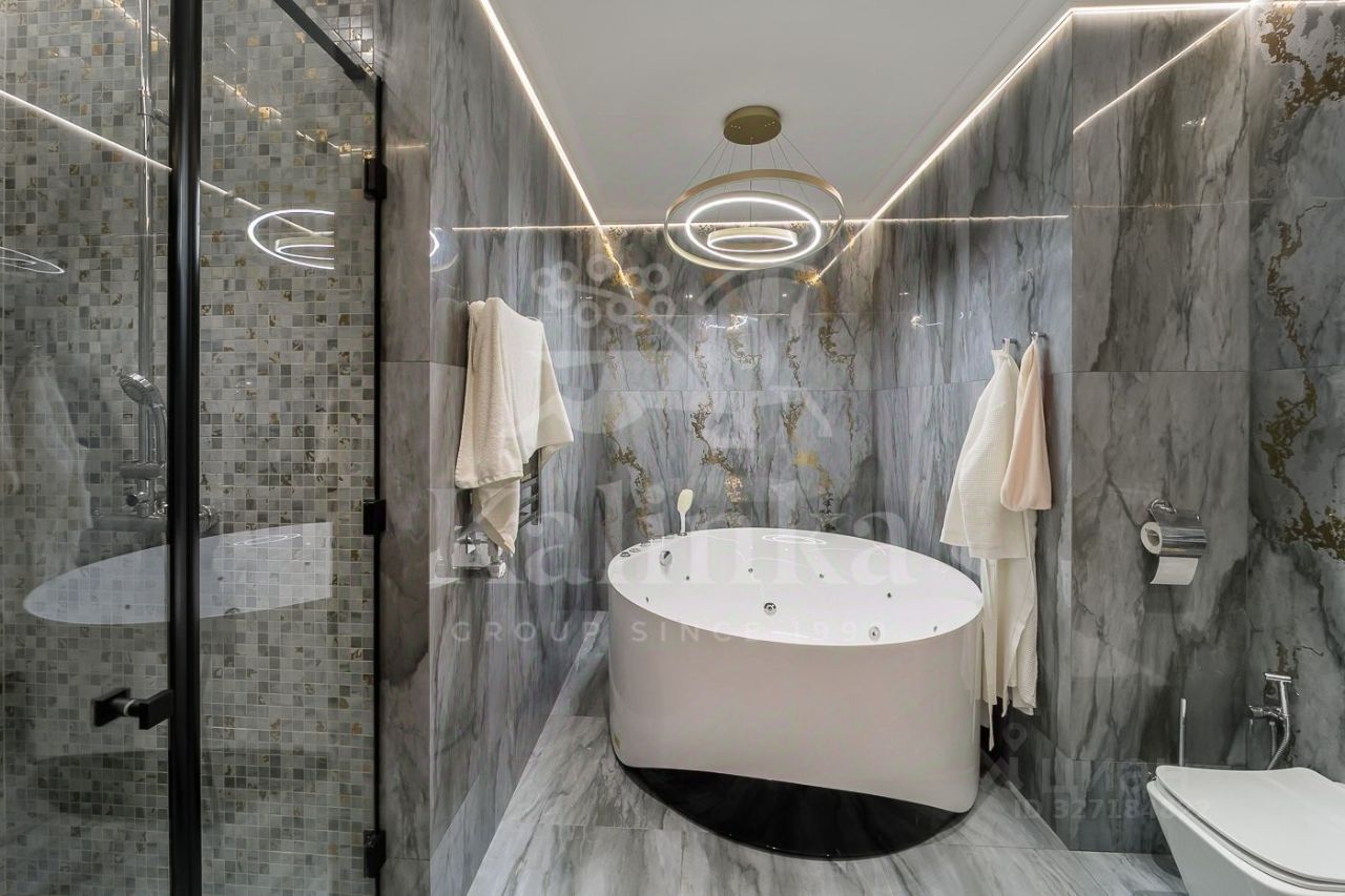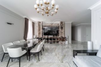 В интерьере выполнен безупречный ремонт с использованием натуральных импортных материалов, подчеркивающих высокий статус объекта.