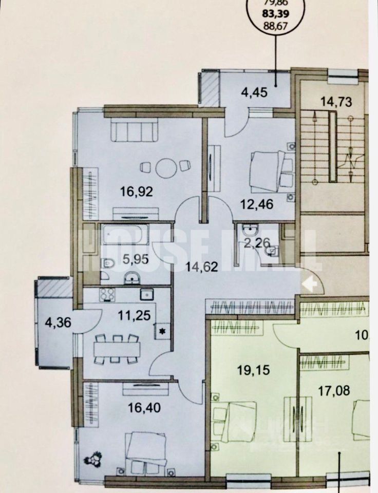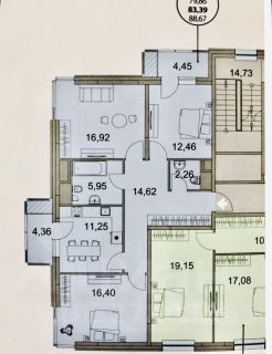 Общая площадь квартиры составляет 84 кв. м, жилая — 42 кв. м, а просторная кухня гостиная 26 кв. м. Высокие потолки в 2,75 метра создают ощущение простора и свободы.