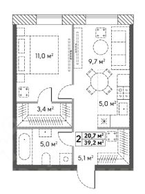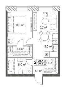 Квартира расположена на 3-м этаже, общая площадь 39,2 м2, окна выходят на улицу Гайдая.