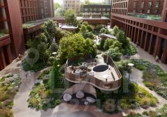 Двор разделен на 4 зоны разных эмоций и действий, которые пересечены и соединены веерными прогулочными маршрутами: