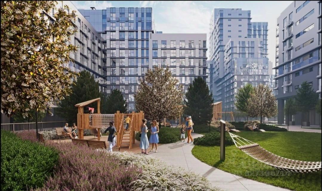 - Безбарьерная среда с многоуровневым ландшафтным парком, детскими площадками, зонами для отдыха и арт-объектами