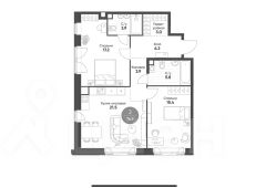 2 просторные спальни, большая кухня гостиная, два сан узла, есть гардеробная комната.