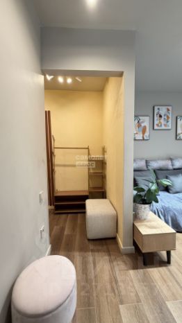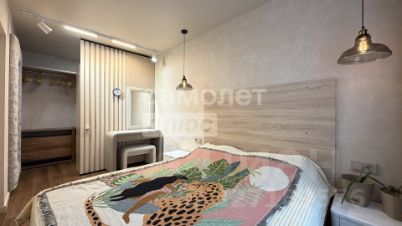 - Простор и функциональность: смежные комнаты, в спальне — удобная зона под гардеробную.