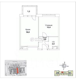 Просторная кухня: площадь кухни составляет 18 кв. м, что позволяет комфортно разместить всю необходимую технику и мебель.