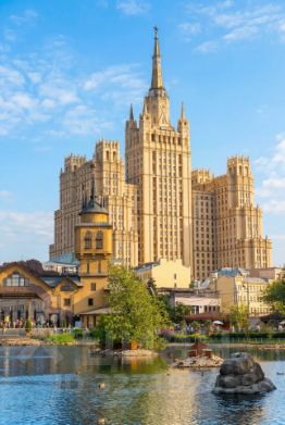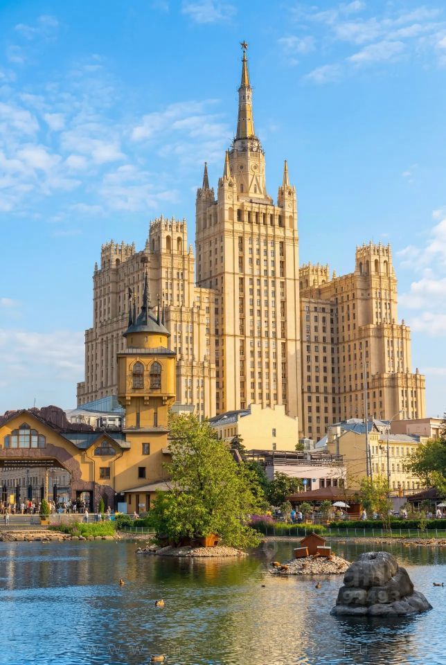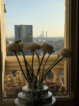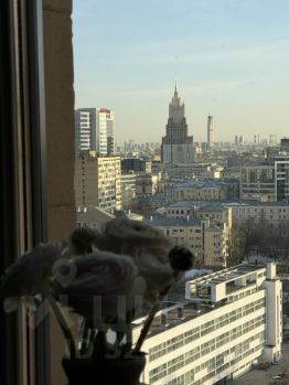 Трёхкомнатная квартира расположена на 13-м этаже знаменитого сталинского дома — элитного исторического здания бизнес-класса в центре Москвы. Панорамный вид с высоты 50 метров открывается прямо с террасы и из каждой комнаты. Высокие потолки 3,2 м создают дополнительный объём и усиливают ощущение пространства.
