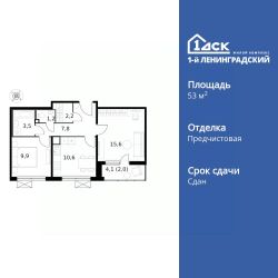 Продаётся 2-к квартира номер 123 общей площадью 53 кв.м. на 10-м этаже 13 этажного здания. Предчистовая отделка. Цена с учётом скидки.