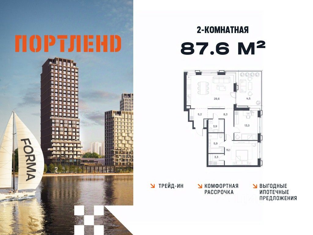 Продаётся 2-к. квартира, 25 этаж в жилом комплексе бизнес-класса ПОРТЛЕНД от девелопера FORMA. ЖК расположен на берегу Москвы-реки в северной части района Печатники в акватории Южного речного порта.