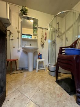 Есть въездные ворота на участок , стоянка для автомобилей, на территории установлен современный хозблок с туалетом, летняя кухня и отдельно стоящее строение где установлен насосная станция, душевая кабина.