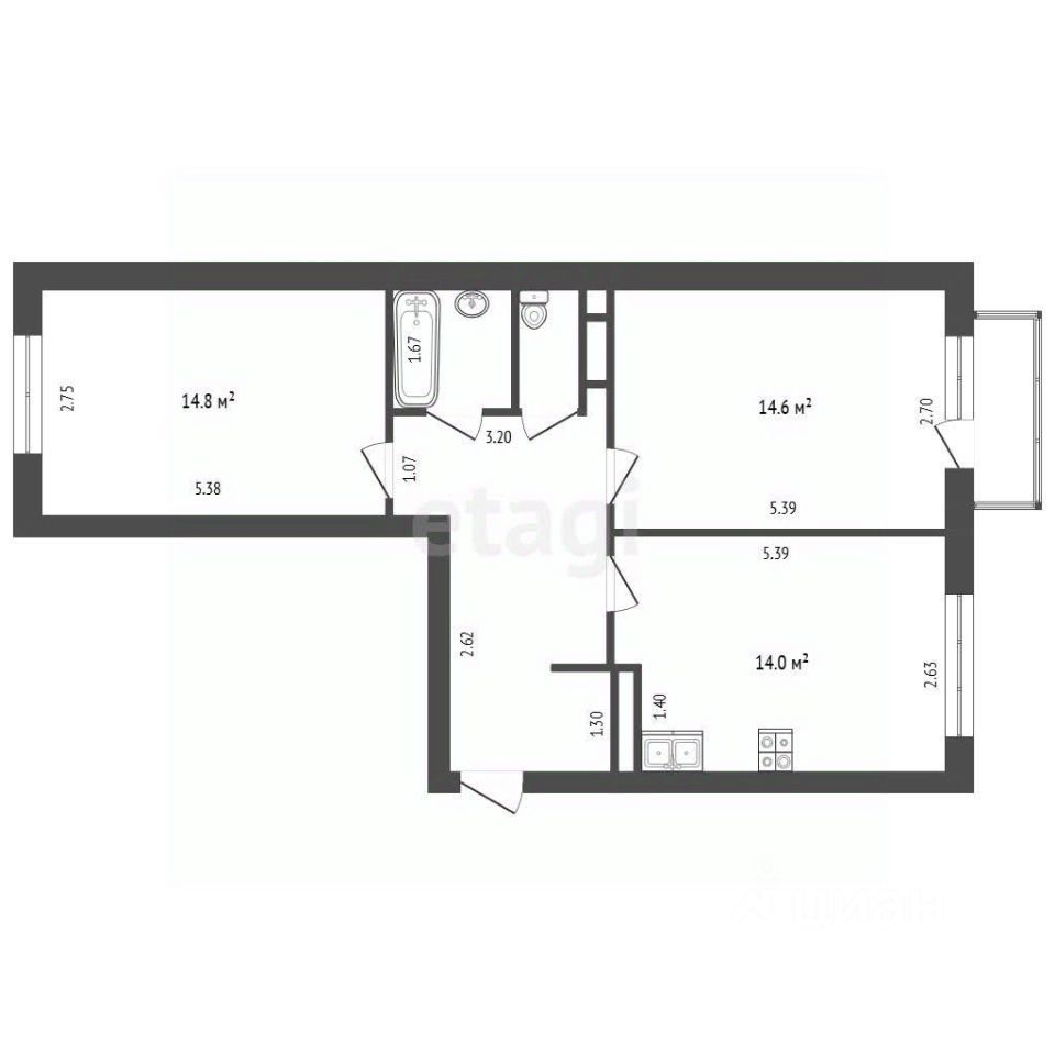 Планировочное решение напоминает "распашонку", что дает возможность создать полноценную двухкомнатную квартиру с изолированными помещениями. Окна кухни и одной комнаты выходят во двор, гарантируя тишину и отсутствие уличного шума, во второй комнате красивый вид на ботанический сад.