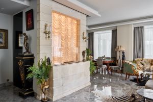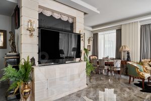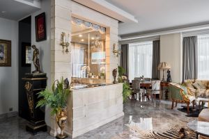 Эксклюзивный интерьер квартиры включает в себя большое количество дорогостоящих антикварных элементов декора эпохи Наполеон 3 Франция начало 19 века.