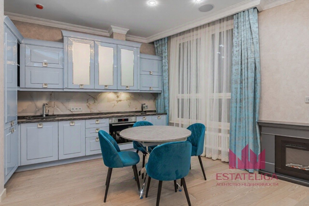Планировка: кухня-гостиная, две спальни, раздельный санузел, постирочная. Выполнен дизайнерский ремонт с использованием премиальных материалов. Установлен камин, мебель и техника известных брендов. Реализованы системы "Умный дом" и "Мультирум". Полностью готово к проживанию.