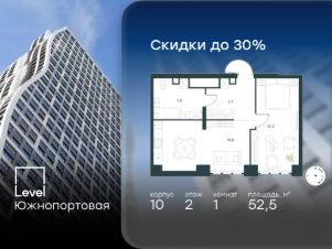 В северной части района Печатники продается 1-комнатная квартира площадью 52.50 кв.м без отделки. Квартира расположена на 2 этаже 68-этажного корпуса 10 в жилом комплексе комфорт-класса Левел Южнопортовая (компания Level Group/Левел групп).