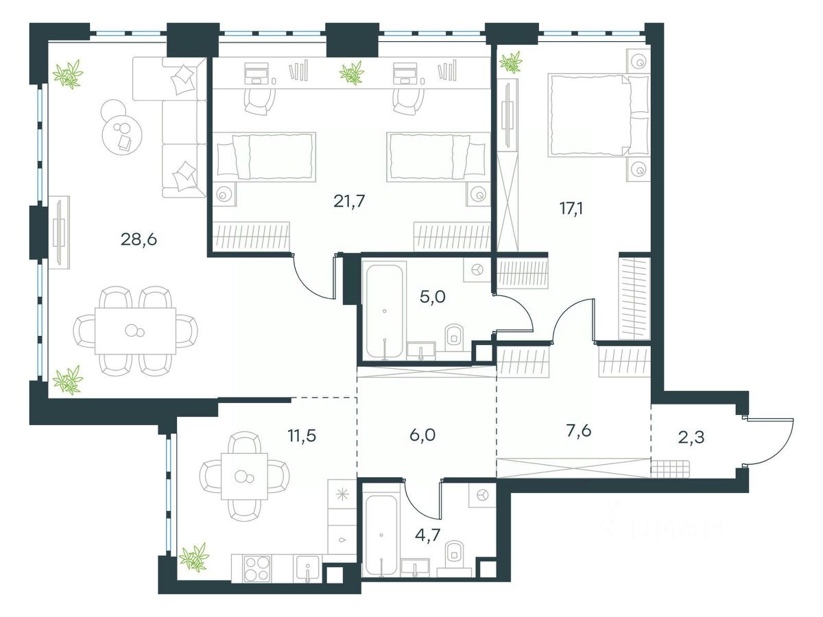 В северной части района Печатники продается 3-комнатная квартира площадью 104.50 кв.м без отделки. Квартира расположена на 34 этаже 49-этажного корпуса 9 в жилом комплексе комфорт-класса Левел Южнопортовая (компания Level Group/Левел групп).
