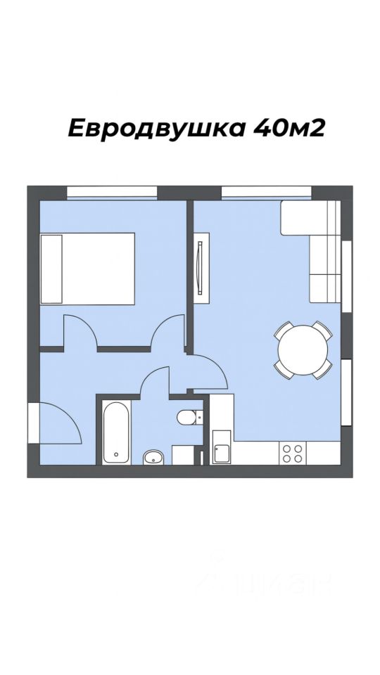 Продается просторная евродвушка 40 м²: