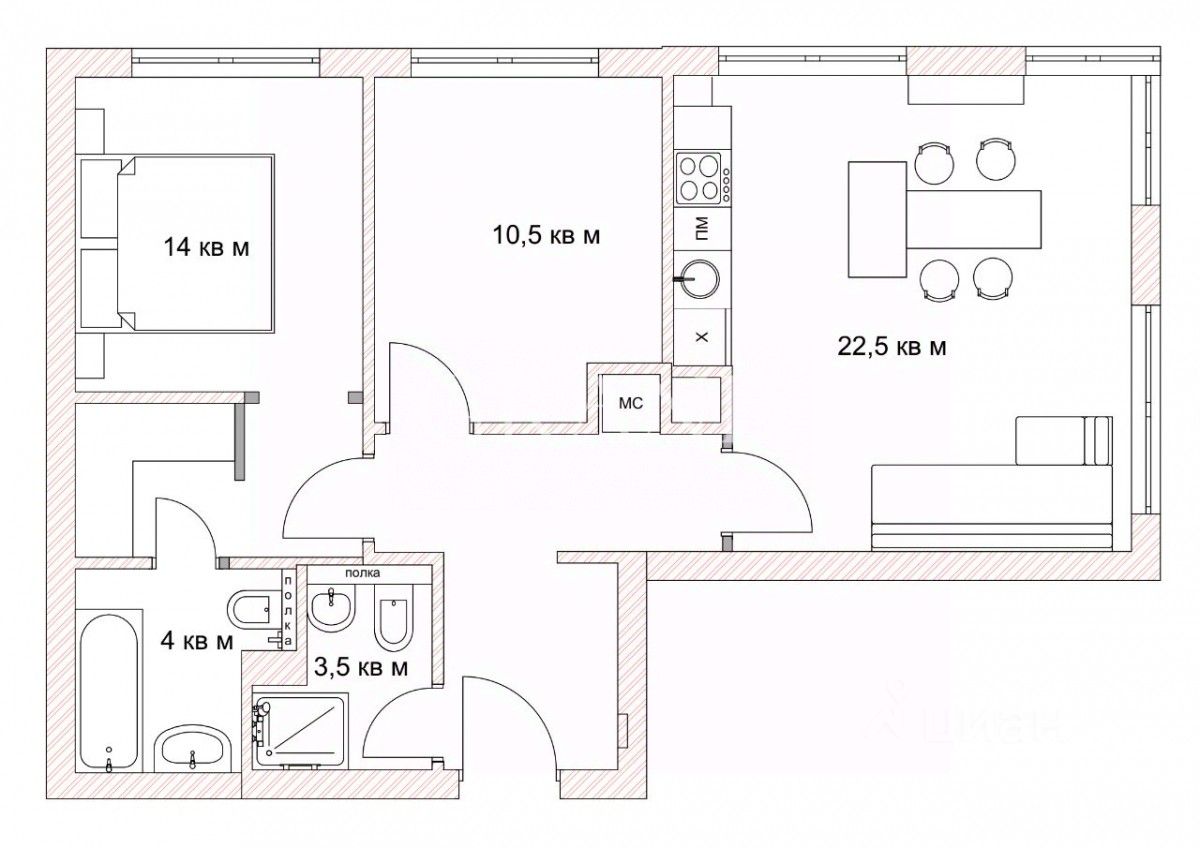 Укомплектован всей необходимой мебелью и бытовой техникой.