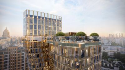 Два элегантных корпуса высотой 15 и 19 этажей объединяет парящий мост-сад на уровне 16-го этажа, создающий редкий для центра столицы архитектурный образ. Авторский почерк бюро ADM узнается в каждой линии: плавные контуры фасадов расширяются снизу вверх, очаровывая выразительной пластикой света и тени, изгибы моста напоминают реку, застывшую в небе.