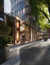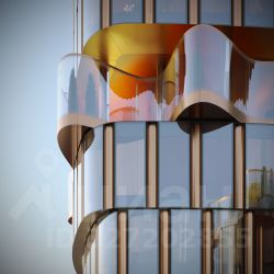 Два элегантных корпуса высотой 15 и 19 этажей объединяет парящий мост-сад на уровне 16-го этажа, создающий редкий для центра столицы архитектурный образ. Авторский почерк бюро ADM узнается в каждой линии: плавные контуры фасадов расширяются снизу вверх, очаровывая выразительной пластикой света и тени, изгибы моста напоминают реку, застывшую в небе.
