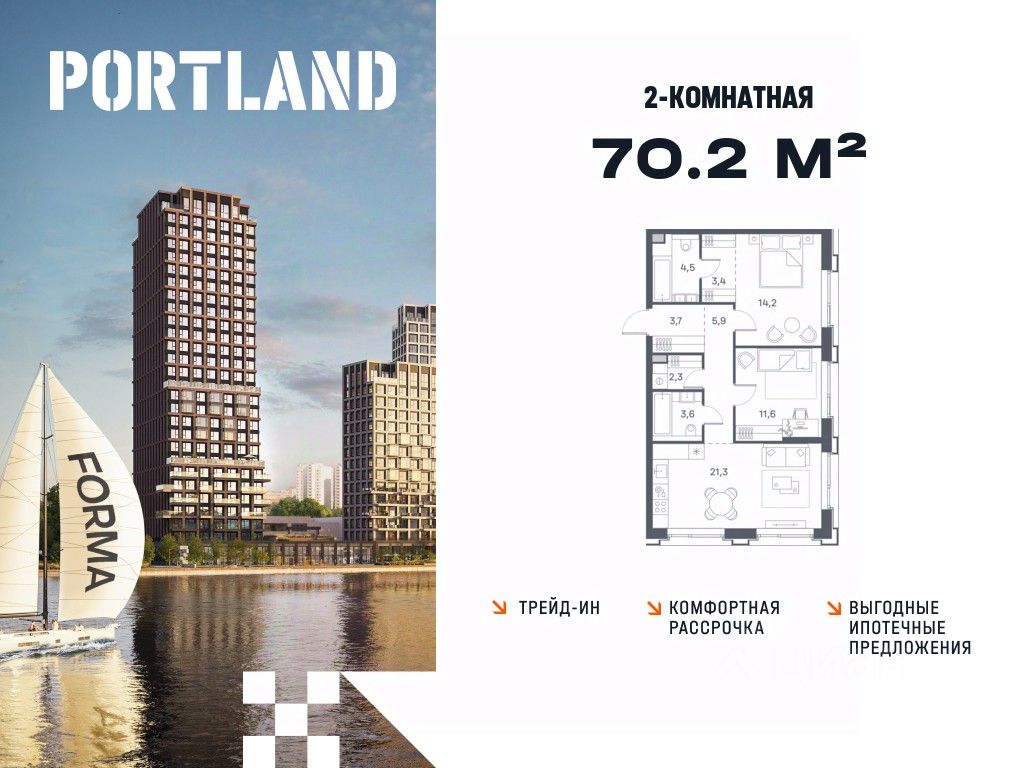 Продаётся 2-к. квартира, 16 этаж в жилом комплексе бизнес-класса Portland от девелопера FORMA. ЖК расположен на берегу Москвы-реки в северной части района Печатники в акватории Южного речного порта.