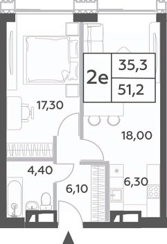 Общая площадь квартиры 51.2 м2 и высота потолков 3.1 м. Устанавливаются премиальные окна Schuco с панорамным остеклением с функцией проветривания, конвекторы в полу. Светлая квартира с кухней-гостиной 24 м2 с большим санузлом. Окна квартиры с потрясающими видами на закат на Долину реки Сетунь. На каждом этаже есть технические балконы для установки системы кондиционирования.