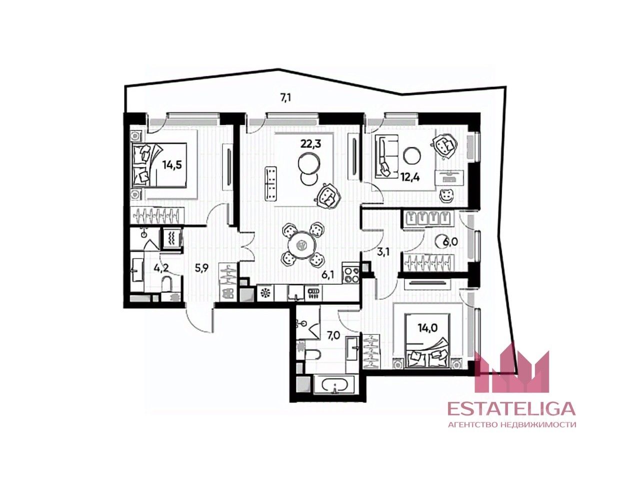 Id 61061. Представляю вашему вниманию ЭКСКЛЮЗИВНОЕ ПРЕДЛОЖЕНИЕ, квартира мечты для ценителей высоты и простора. 103 квадратных метра уюта на 22 этаже в популярном ЖК Pride, а именно в премиальной секции 10, которая отличается повышенным комфортом, улучшенными планировками и продуманными местами общего пользования.
