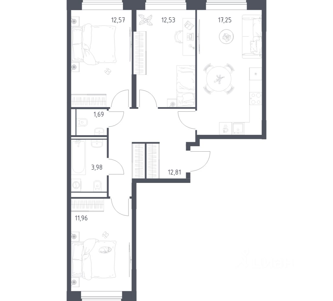 Строим кварталы для жизни с заботой о будущем. Предлагается 3-комнатная квартира комфорт-класса площадью 72,79 кв.м в корпусе 1 на 7-м этаже, в жилом комплексе "Квартал Домашний".