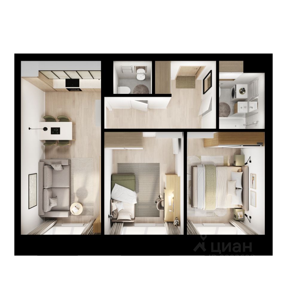 Продаётся 2-комн. квартира площадью 56,2 кв.м на 42 этаже 45 этажного дома (Корпус 1.4, Секция 1) проекта ПИК Полар. Светлый просторный подъезд на уровне земли, функциональная планировка, большие окна, c отделкой.