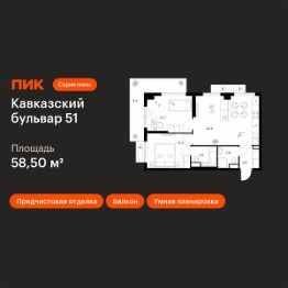 Продаётся 2-комн. квартира площадью 58,5 кв.м на 10 этаже 24 этажного дома (Корпус 3.5, Секция 2) проекта ПИК Кавказский бульвар 51. Светлый просторный подъезд на уровне земли, функциональная планировка, большие окна, предчистовая отделка.