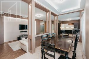 Планировка: кухня, просторная гостиная, две спальни, кабинет, два совмещенных санузла с ванной и душевой кабиной, гостевой санузел. Квартира меблирована, укомплектована всей необходимой для жизни бытовой техникой. Кондиционирование, спутниковое ТВ, высокоскоростной интернет.