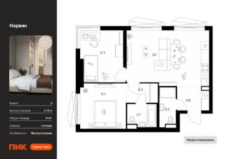 Новостройка! Продается 2-комн. кв-ра площадью 61 кв.м, (Корпус 1.3, Секция 3) 29 этаж 38-этажного дома в Нарвин от ПИК. Новый проект ПИК Серии плюс "Нарвин" возводится в Головинском районе Москвы.