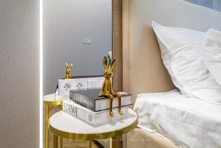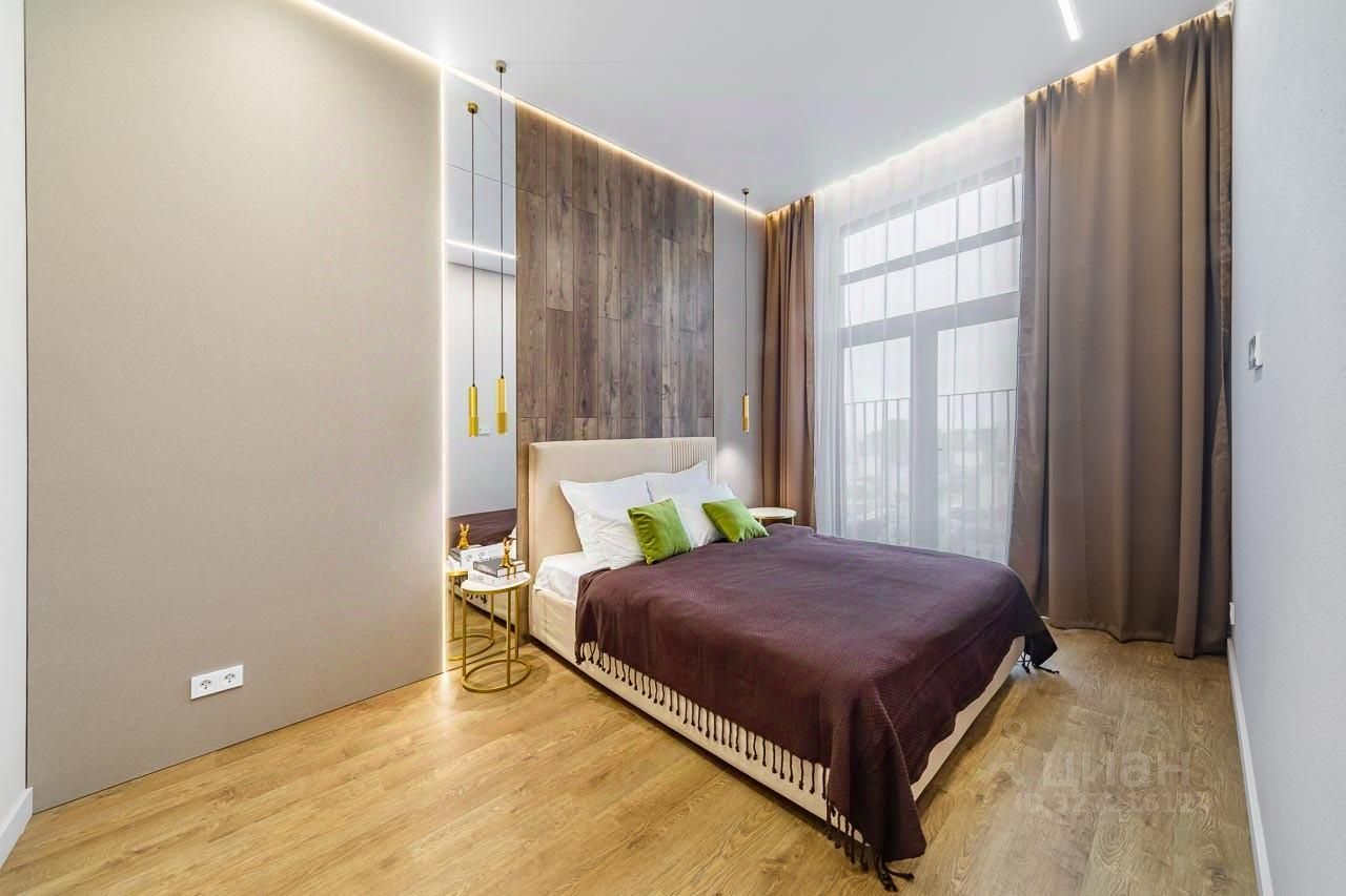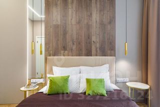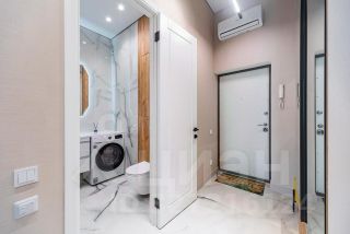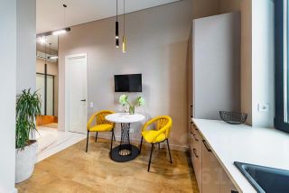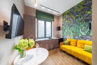 Продуманная и функциональная планировка- общая площадь 34 м.кв., на которой расположились: - спальня - 13 кв.м. с гардеробной комнатой и просторная кухня, укомплектованная необходимой техникой (варочная панель, духовой шкаф, посудомоечная машина, холодильник). Эргономичная ванная комната с водонагревателем и системой защиты от протечек воды.