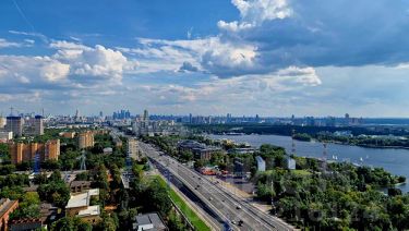 Окна открывают захватывающие виды на канал им. Москвы, Сталинские высотки и Сити.