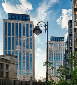 ЖК: Охраняемый благоустроенный двор только для жителей, детский сад и школа во дворе — всё для комфортной жизни семьи. Современная архитектура с облицовкой фасадов натуральным камнем и декоративной подсветкой.