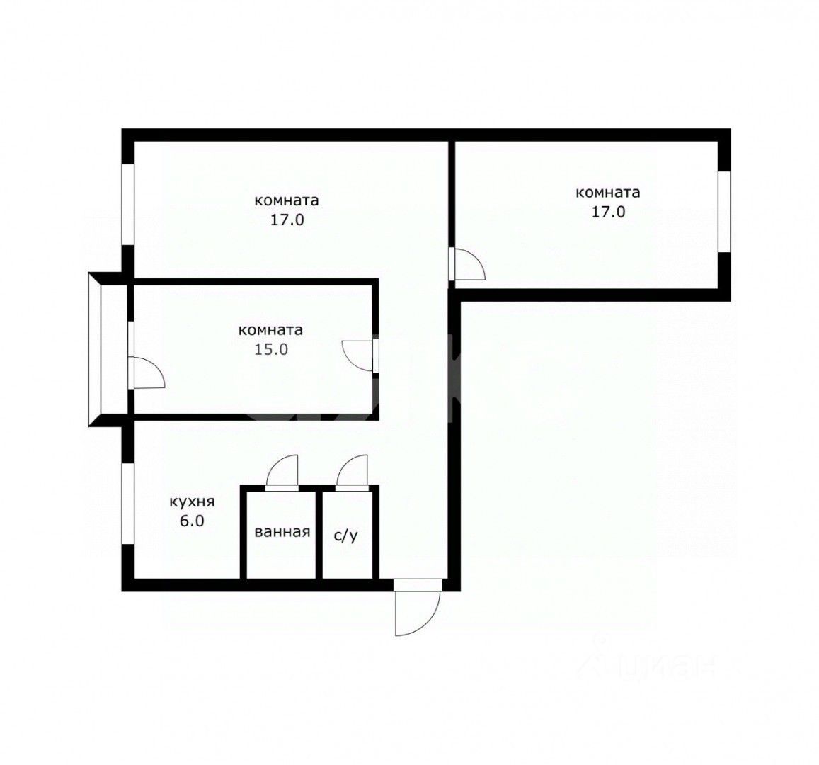 Просторная трёхкомнатная квартира с функциональной планировкой (можно объединить кухню и гостиную)