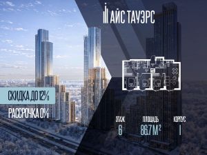 Выгода 12%, беспроцентная рассрочка от застройщика. Продается 3-комнатная квартира на 6 этаже, 86.7 кв.м. площади в жилом комплексе "Айс Тауэрс", который расположен в Западном административном округе Москвы. Архитектура комплекса отличается панорамным остеклением фасадов.