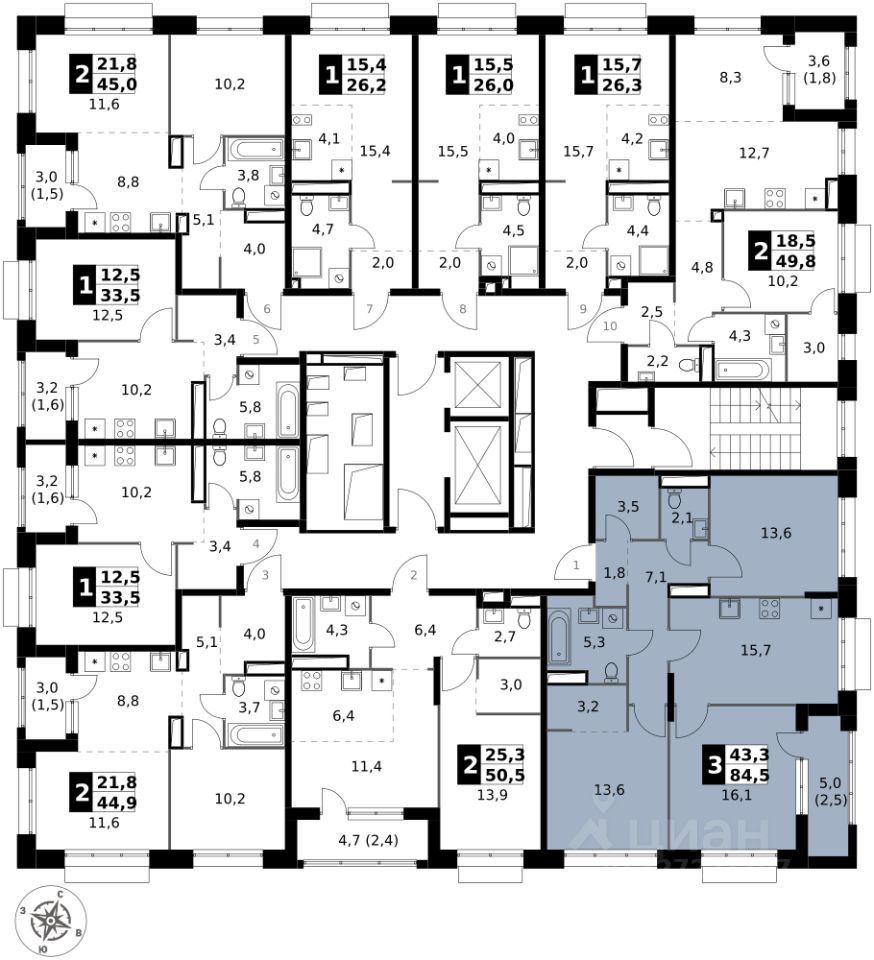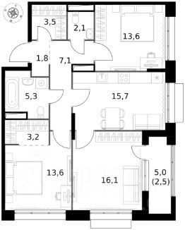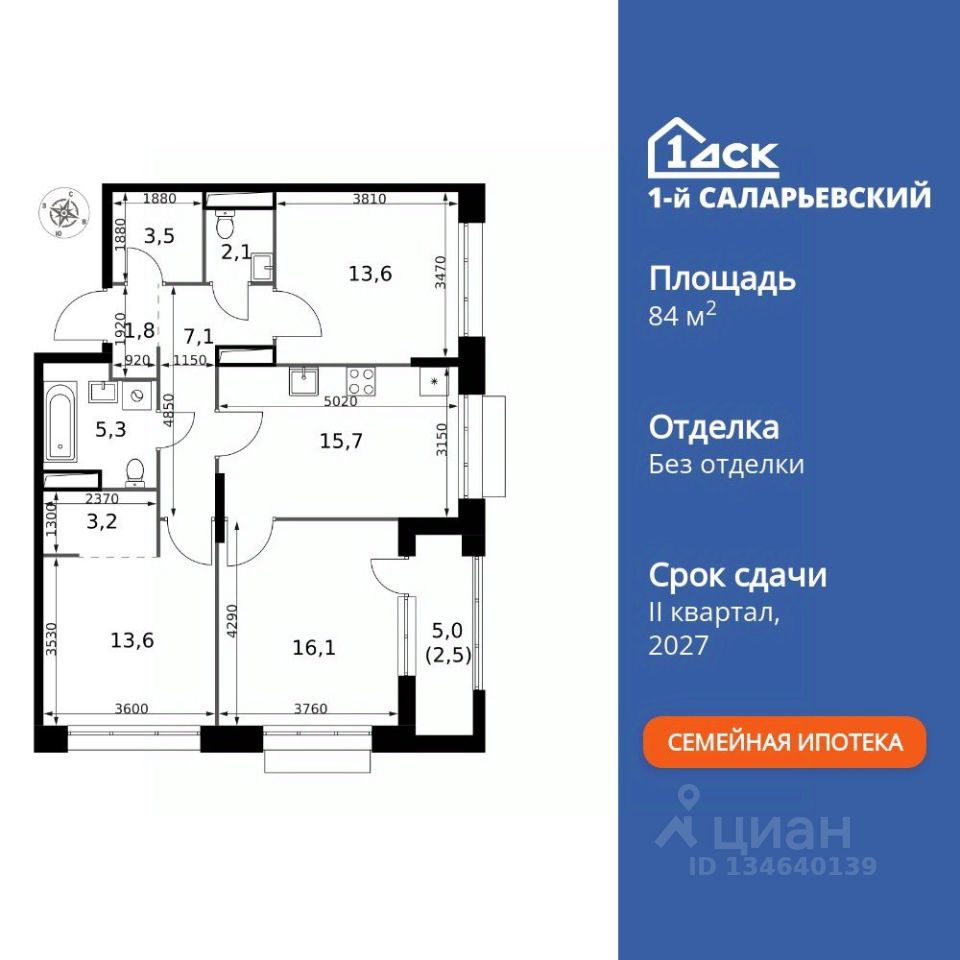 Продаётся 3-к квартира номер 21 общей площадью 84.5 кв.м. на 4-м этаже 21 этажного здания. Без отделки. Цена с учётом скидки.