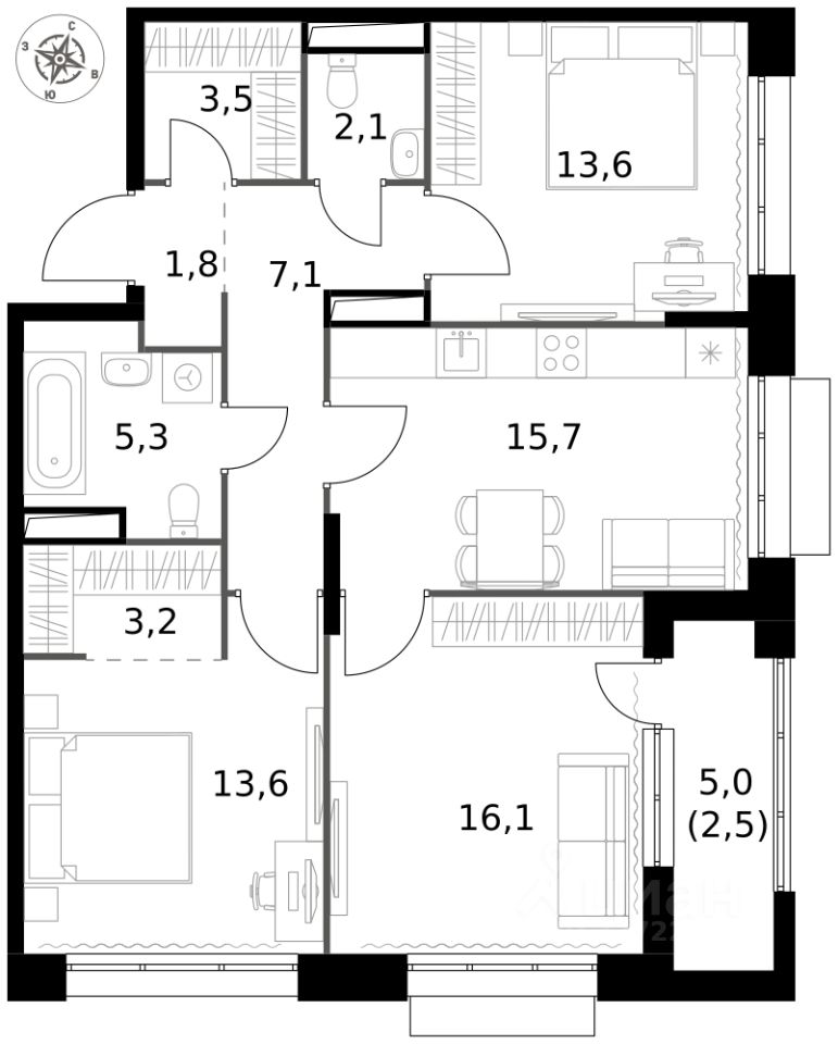 - Просторная лоджия - идеальное место для уютных вечеров.