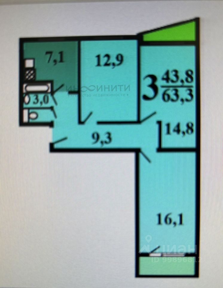 Эта квартира идеально подойдет для тех, кто ценит комфорт и удобство. Расположенный на 3 этаже 9 этажного дома, данный объект имеет 3 комнаты и общую площадь 63.50 кв.м. Кухня занимает 7.1 кв.м., что обеспечит вам достаточно места для комфортного приготовления пищи.