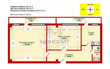ОТЛИЧНОЕ ПРЕДЛОЖЕНИЕ! Предлагается к продаже просторная двухкомнатная квартира площадью 56 квадратных метров. Есть 2 лоджии по 6 метров.