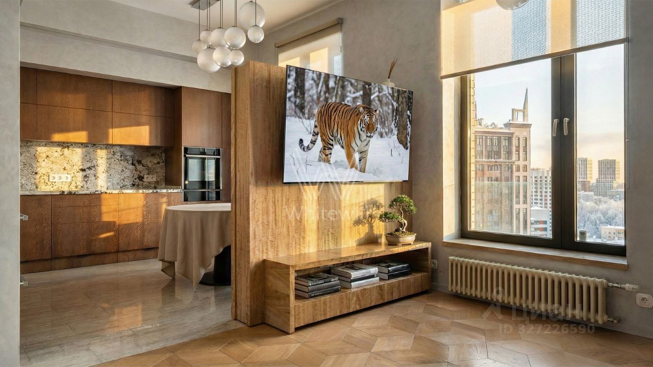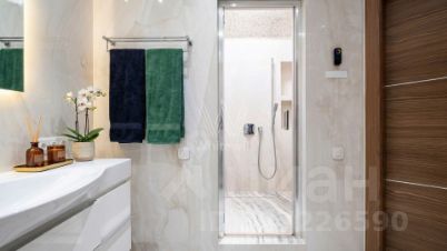 Квартира с 3 спальнями в комплексе бизнес-класса Vander Park. Квартира площадью 126 м² расположена на 18 этаже в корпусе 8. Выполнена дизайнерская отделка в светлых тонах с использованием фактуры мрамора и дерева. Установлена центральная система кондиционирования.