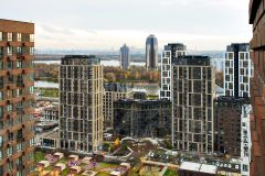 Панорамные окна открывают живописный вид на Москву-реку и благоустроенный внутренний двор комплекса, наполняя квартиру естественным светом и создавая ощущение гармонии с природой.