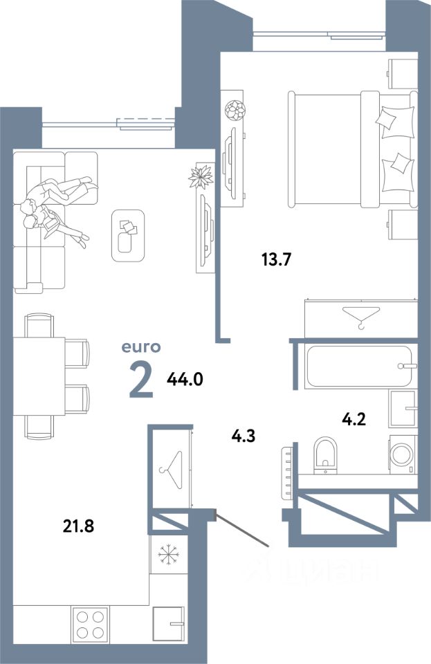 44 м²