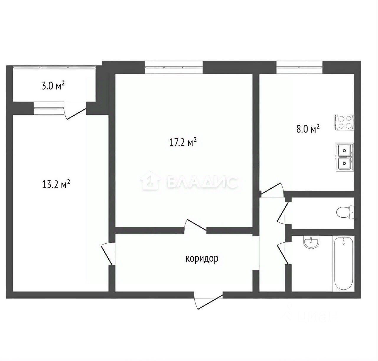 В квартире один раздельный санузел, что обеспечивает удобство для всех членов семьи. Кухня площадью 8 кв. м позволит комфортно разместить всю необходимую технику и мебель.