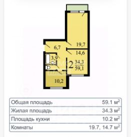 комнаты 19,7 м2 и 14,6 м2